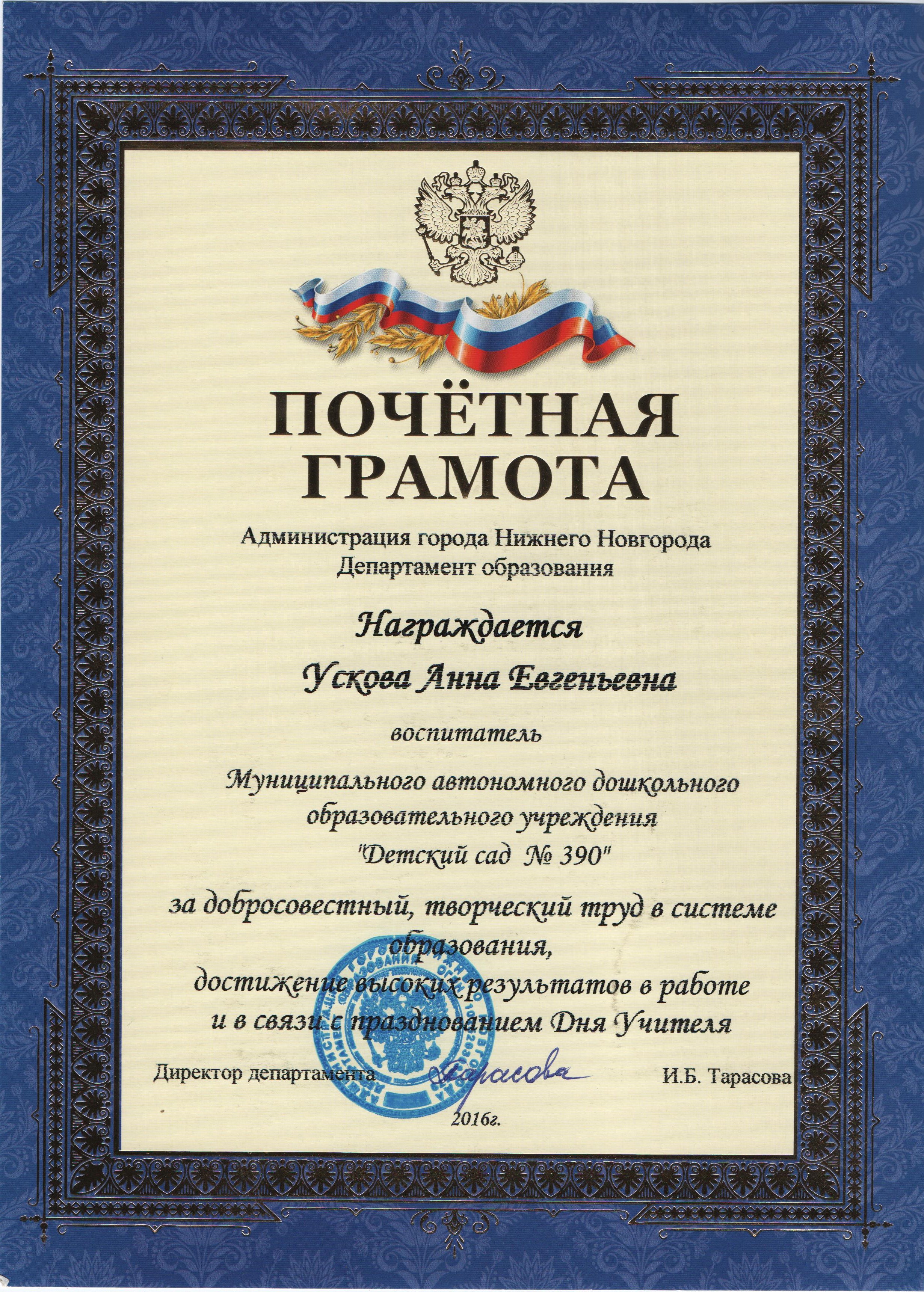 Достижения, награды воспитателя